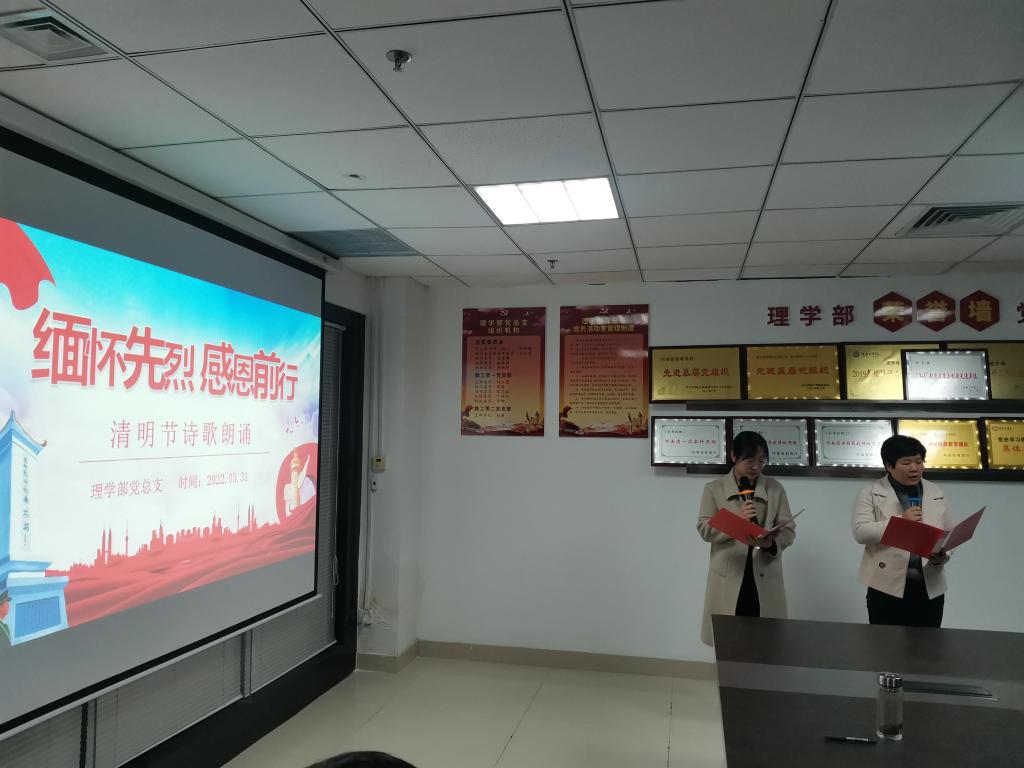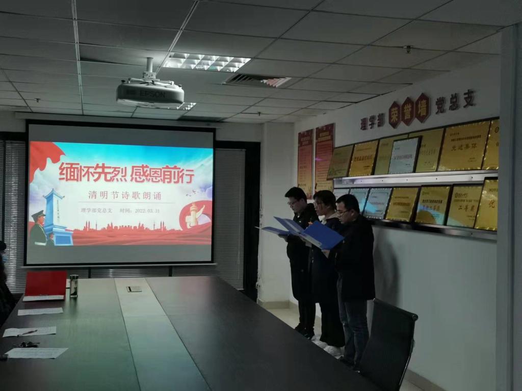 天地英雄气,千秋尚凛然。清明节将至,为悼念革命先烈,缅怀先烈的丰功伟绩,让教职工继承先烈的光荣传统,弘扬民族精神,发扬先烈遗志,理学部组织全体教职工于3月31日在创新楼1117举办“缅怀先烈,感恩前行”诗歌朗诵主题文化活动。