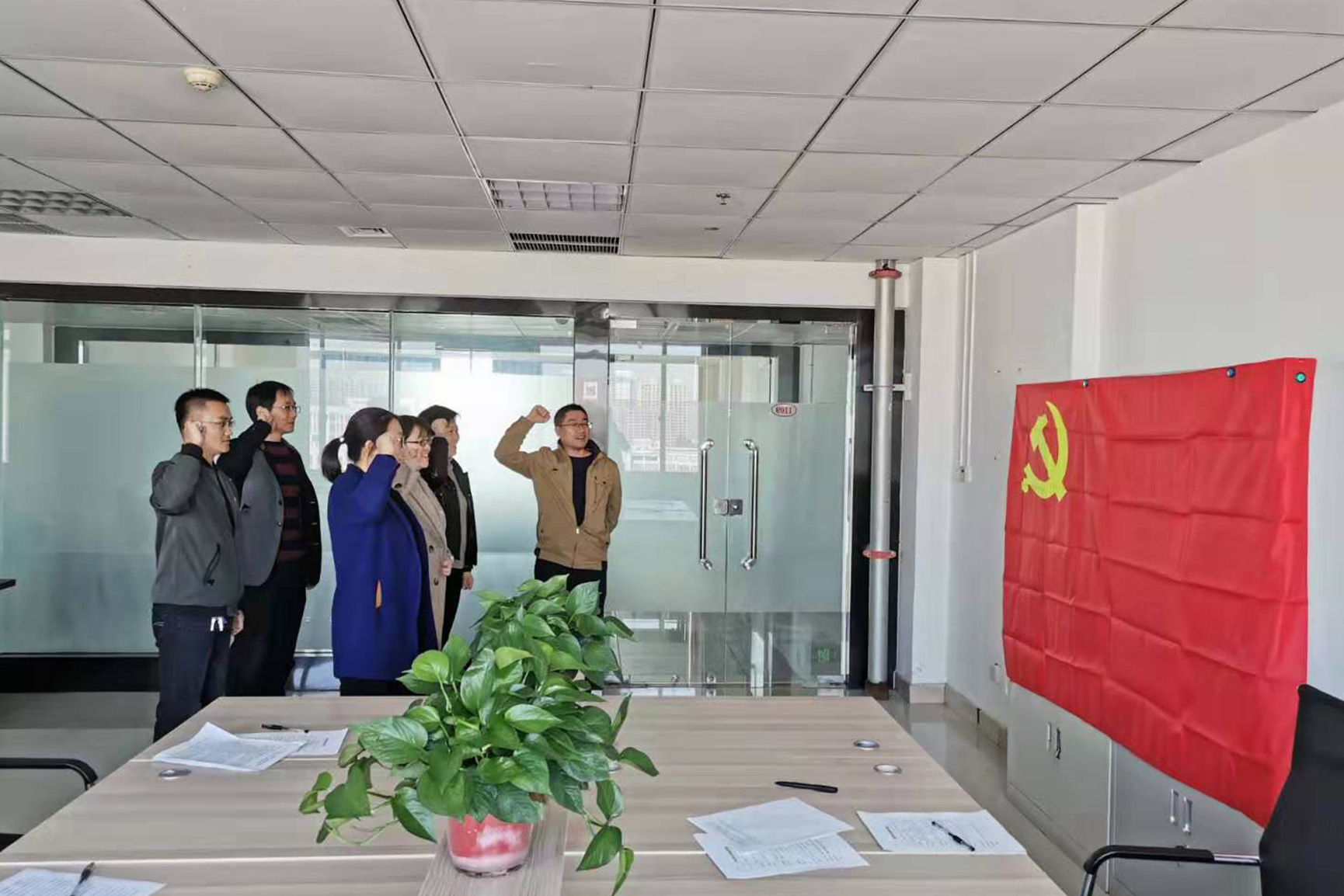 会上,全体党员围绕“入党初心是什么、党员使命担什么、对照先进差什么、立足本职做什么”四个方面,结合学习情况和自身实际,进行“初心使命四问”交流。通过回顾入党历程,回想入党初心,评价自身职责履行情况,认真分析查找自身存在的偏离初心的问题;对照先进典型,认真学习,深入反思,查找自身在思想觉悟、能力素养、道德修养、本职工作中存在的差距和不足。全体党员敞开心扉谈体会,开诚布公谈感想,对“不忘初心、牢记使命”主题教育有了进一步的理解,进一步坚定了理想信念,强化了宗旨意识。会议最后,全体党员高举右手,面向党旗,庄严宣誓。