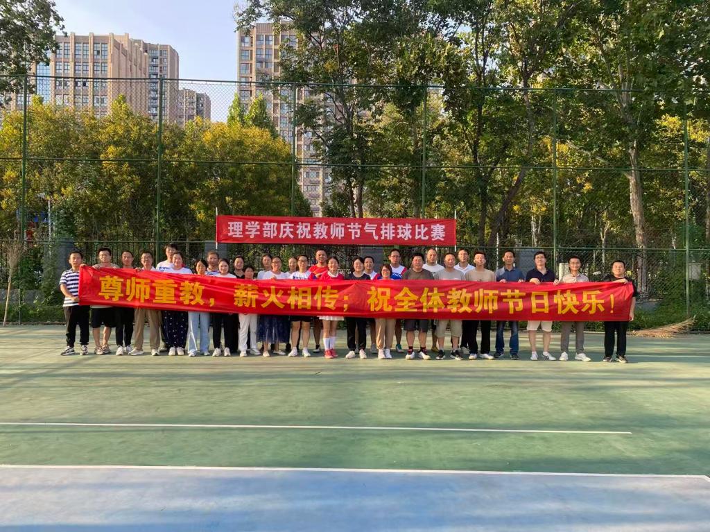 在第41个教师节来临之际,为丰富教师们的课余文化生活,增强教研室之间的交流协作,进一步凝聚发展合力,9 月9 日,理学部分工会精心组织高等数学教研室、工程数学教研室、物理教研室,开展了一场别开生面的欢庆教师节气排球活动。三个教研室的教师们踊跃参与,以运动健身、团结竞技的方式,共度了一个充满活力与温情的节日。