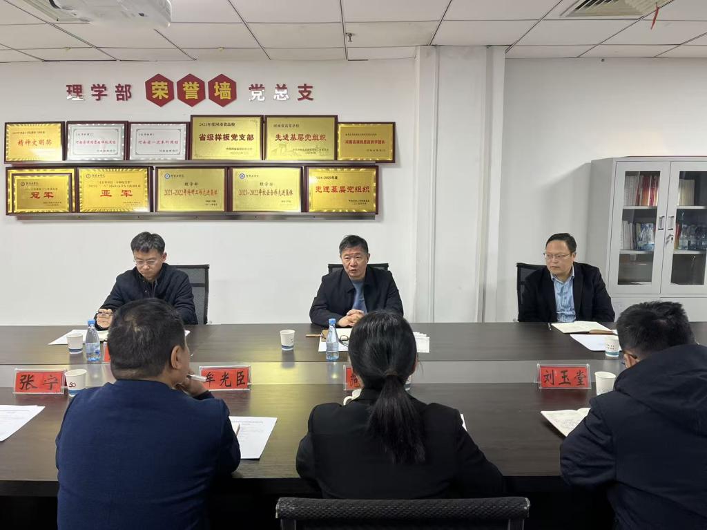 范丽萍首先代表理学部对路阳书记一行的到来表示热烈欢迎,并围绕党建引领、师资队伍、教学科研、学科竞赛等方面作了全面工作汇报。范丽萍在汇报中重点介绍了理学部创新实施 “蜂巢”工作法。该方法以“走心、走新、走馨”为原则,通过组建教学、科研、竞赛、服务四支“先蜂队”,充分发挥党支部战斗堡垒和党员教师先锋模范作用,推动党建与业务深度融合。近年来,理学部在教学技能竞赛、国家自然科学基金项目、学科竞赛等方面取得显著成绩,荣获河南省样板党支部和省级先进基层党组织等荣誉。在教师代表座谈环节,与会教师结合工作实际,就基础课教学特点、科研时间保障、办公条件改善、人才引进政策、职称评定机制等普遍性问题进行了深入交流。