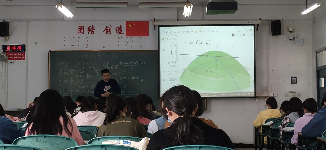 2. 集体备课。高等数学课程组坚持每周一下午集体备课,每次都有主题,有负责教师。要求青年教师将第一阶段学习中遇到的问题提出,老教师就问题给出一些建设性意见;共同针对课程重点和难点,分享自己的教学设计;针对学生的现有水平,从概念引入、从实际生活找实例、调动学生参与、板书设计等多方面细致讨论,提高授课的效果。重点挑选3个有代表性的章节---方向导数、重积分应用、对坐标的曲面积分,作为重点磨课内容。