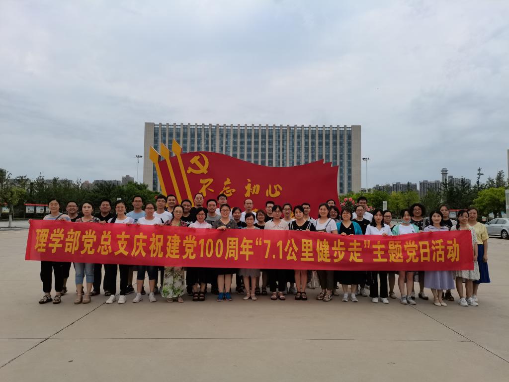 为庆祝建党100周年,深入开展“学党史、悟思想、办实事、开新局”主题教育,进一步提升基层党组织凝聚力,理学部党总支于2021年7月1日组织全体教职工开展庆祝建党100周年“7.1公里健步走”主题党日活动,用7.1 km的徒步,纪念党的100周年诞辰,用连续不断的行走,致敬党走过的万水千山,用追随的脚步,践行心中的信仰。