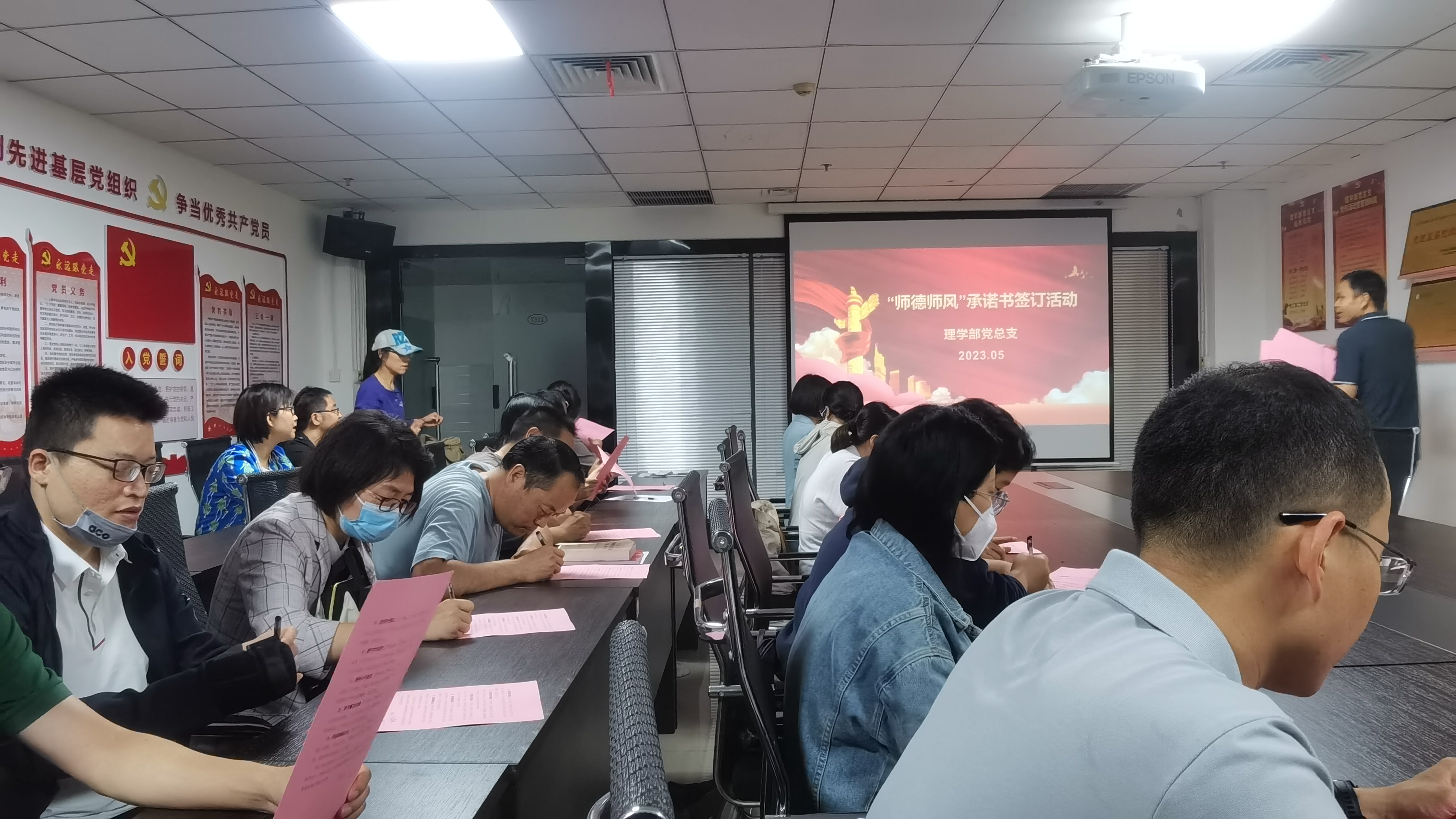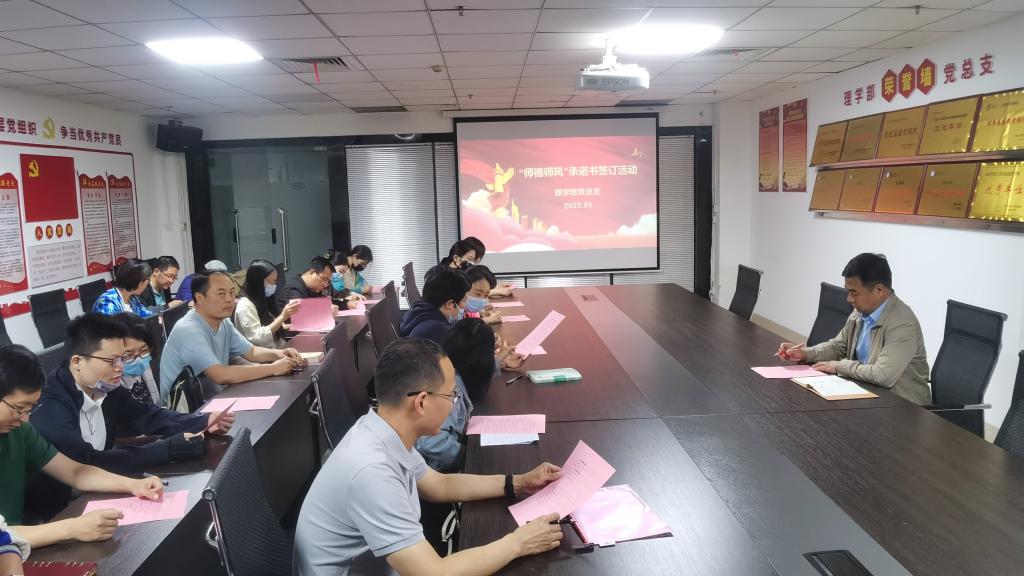 为进一步加强党风廉政建设,不断提高全体教师及党员干部的廉洁自律意识,5月25日,理学部党总支开展廉政教育月活动工作会议,组织全体教师签订廉政承诺书,以此引导全体教师对党忠诚老实,坚定理想信念,牢记初心使命,严守纪法规矩,时刻自重自省,扣好廉洁从教的“廉洁扣”。党总支书记范丽萍表示,党员签署承诺书是2023年理学部廉政教育月活动的一项重要内容。通过此项活动,使全体教师,尤其是党员干部要进一步认清当前党风廉政建设重要性,将廉洁自律内化于心、外化于行,真正做到筑牢防线、不踩红线、守住底线。