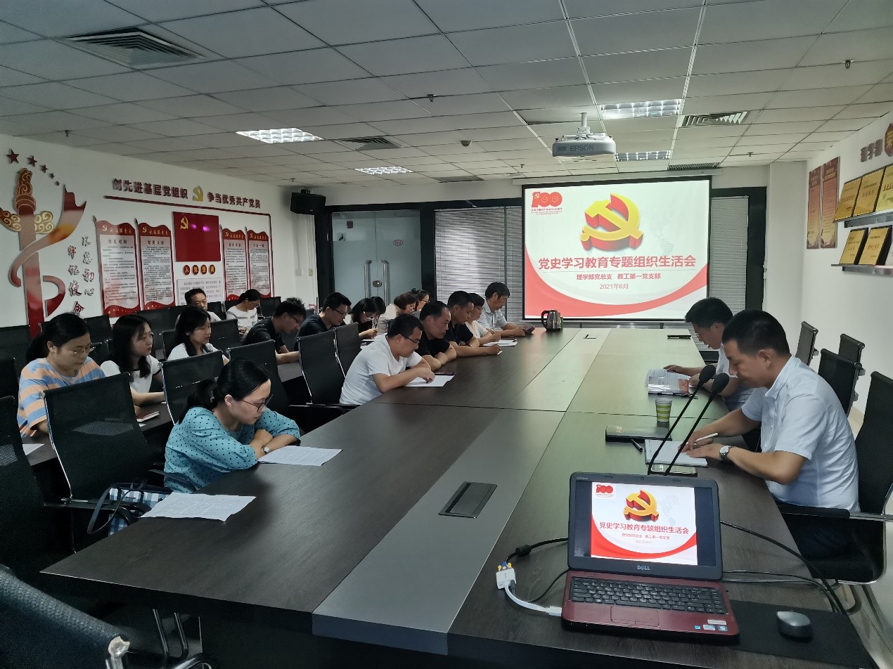 6月29日下午,理学部党总支教工第一党支部在创新楼1117会议室召开党史教育专题组织生活会,校纪委党史学习教育督导员冯伟及理学部党总支第一党支部全体成员参加了研讨会。会议由理学部教工第一党支部书记刘玉堂同志主持。