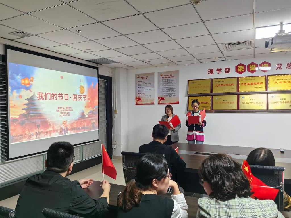 为了此次实践活动,教师们认真准备,精心挑选了古今与“中秋、国庆”有关的名篇佳作,开展了一场精彩的“迎中秋,庆国庆经典诵读”活动。随后是中秋、国庆知识抢答,引发广大教师的参与热情,现场人头攒动,热闹非凡;接着,以教研室为单位合唱河南工学院校歌《开拓之歌》和《我和我的祖国》,那歌声激昂豪迈、催人奋进,表达了大家对伟大祖国的衷心依恋与真诚歌颂,对中秋佳节的美好祝福,激励教师形成积极向上的观念和奋发向上的精神;最后活动在理学部全体大合唱《歌唱祖国》中圆满结束。