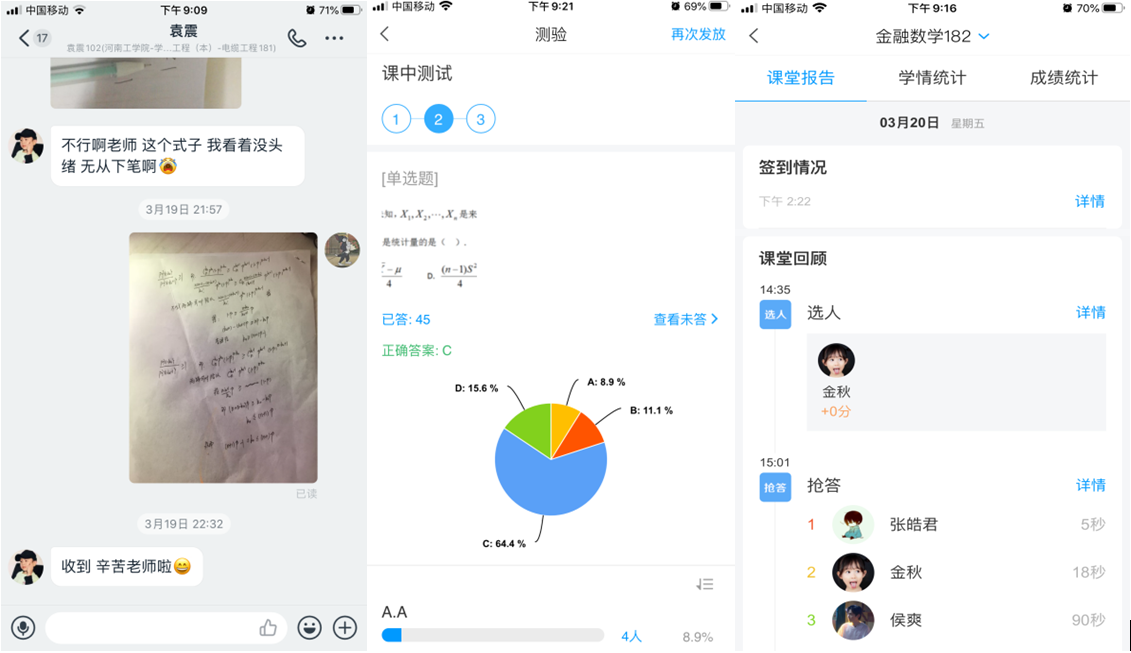 通过认真学习各种教学平台和教学软件,结合课程性质和网络情况,刘老师最后打出了“学习通+钉钉+大学慕课+微信群QQ群”的组合拳。